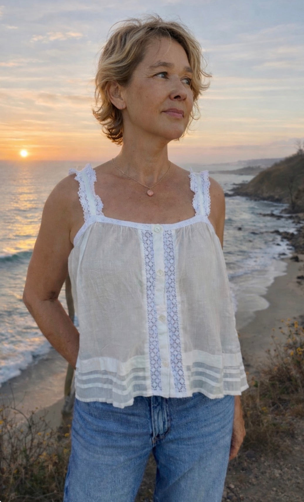Ashley Sleeveless Top With Lace Natural