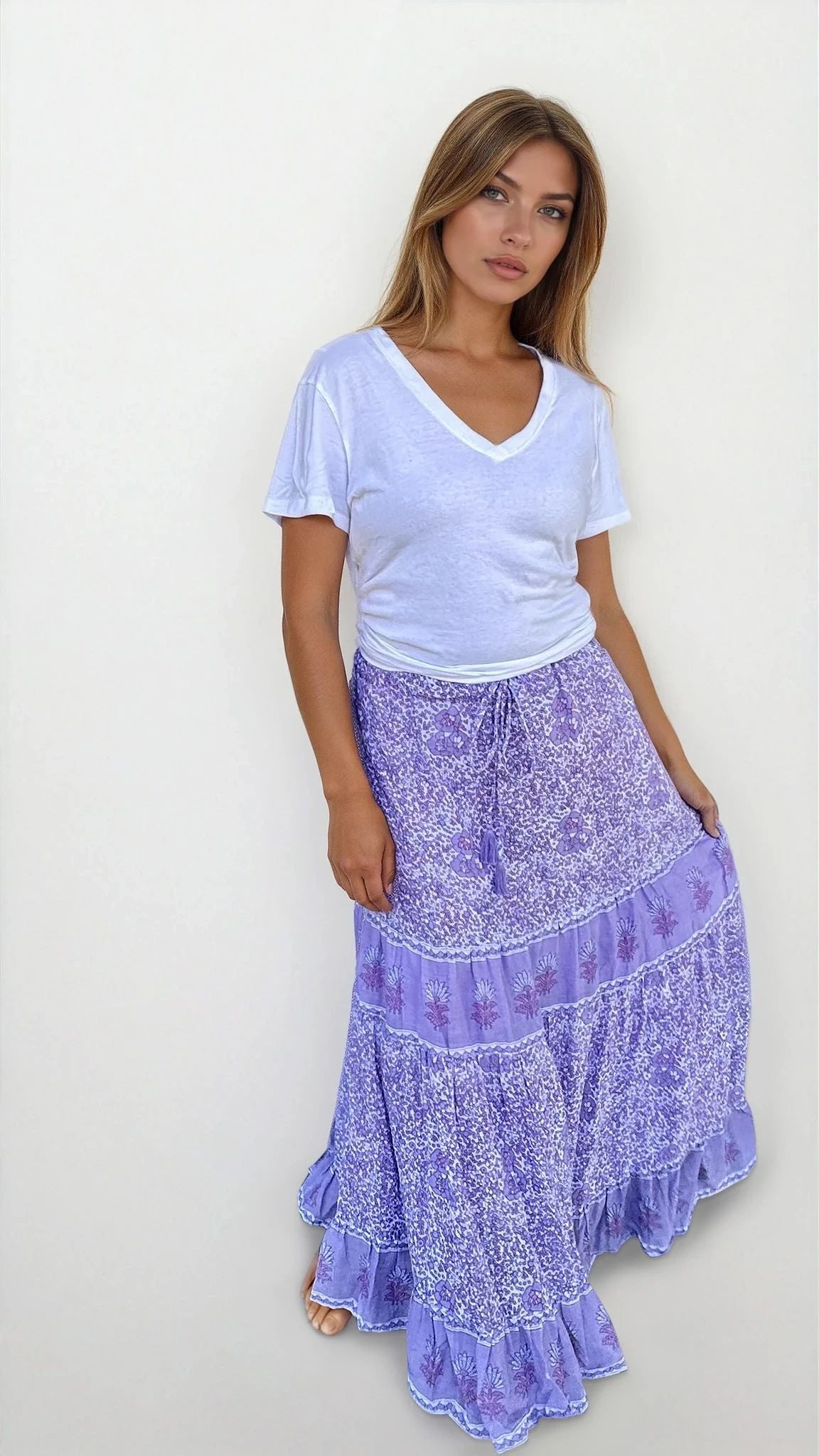 Roxane Printed Maxi Skirt With Drawstring Lilac