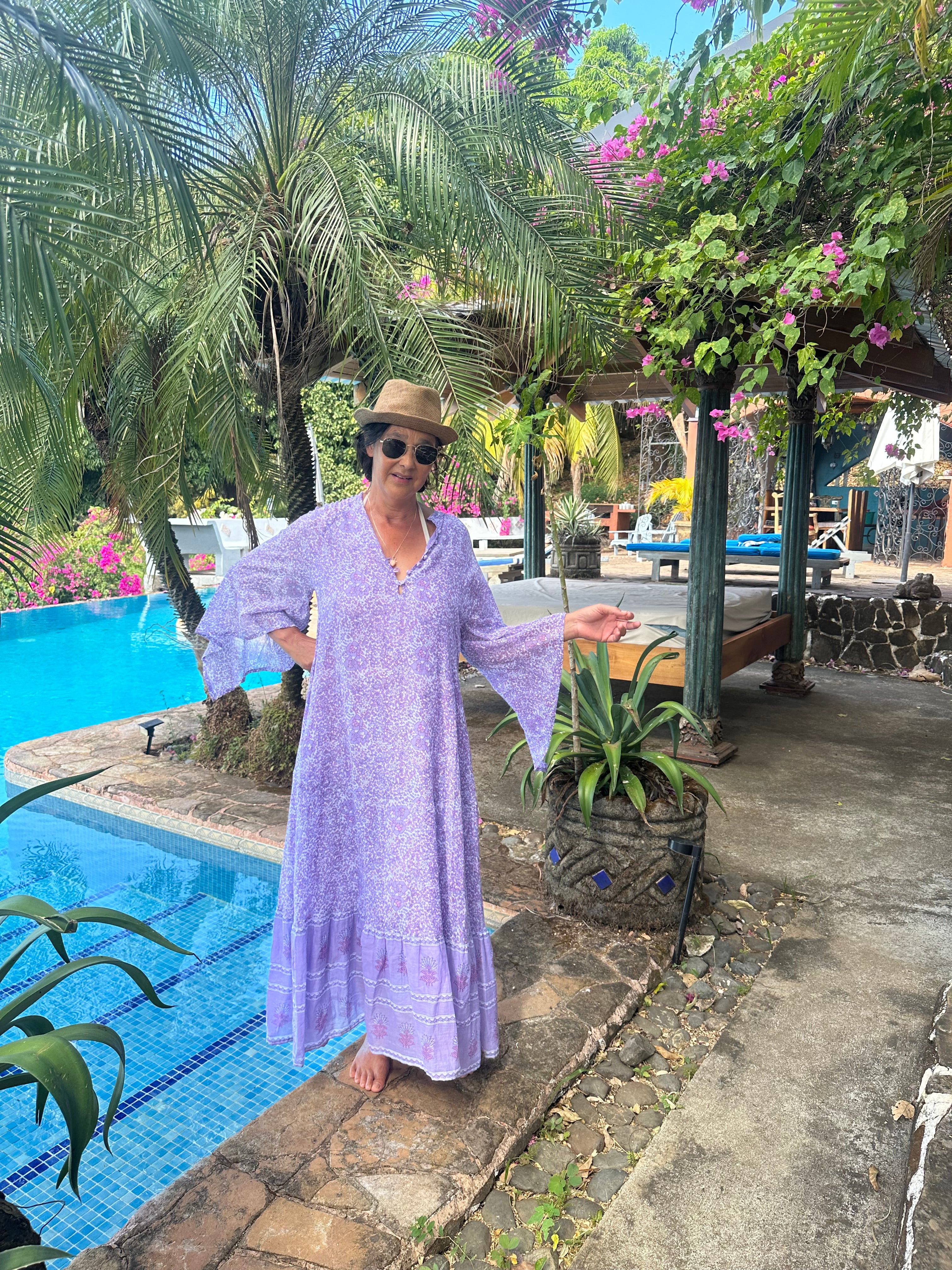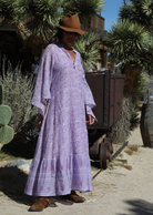 Twirl into bohemian bliss with the Audrey Printed Maxi Dress, where whimsical butterfly sleeves flutter with every step. This lilac beauty captures free-spirited hippie vibes with its flowing maxi silhouette and enchanting prints. Perfect for festival season, beach getaways, or whenever you want to channel your inner flower child. Embrace the magic of effortless, boho-chic style that celebrates your adventurous soul.
