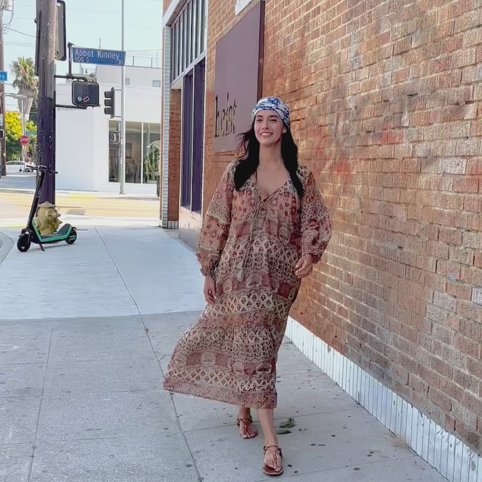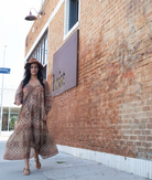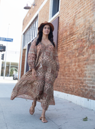 Step into effortless elegance with the Ella Printed Maxi Dress in Long Sleeves Beige. This playful yet sophisticated dress features a flowing maxi silhouette in a soft brown-beige hue, perfect for turning heads wherever you go. Its long sleeves add a touch of grace, making it ideal for breezy afternoons or evening soirees. Whether you’re wandering through a weekend market or attending a chic dinner, this dress moves with you combining comfort and style for endless compliments. Elevate your wardrobe and let your playful side shine in this timeless piece.