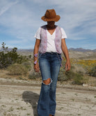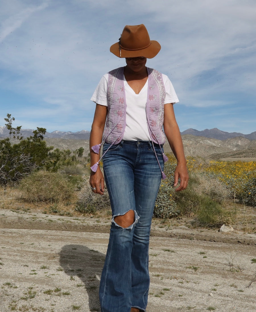 June Printed Sleeveless Vest With Tassels Lilac