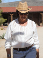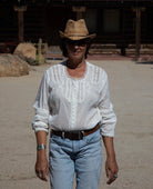 Embrace your boldest self in the Shirley Embroidered Blouse, where delicate lace meets fearless style. This long-sleeve white top channels bohemian spirit with intricate embroidered details that demand attention. The sheer lace elements create an alluring, unapologetic look. Perfect for those who refuse to blend in. Layer it, wear it solo, or make it the statement piece your wardrobe's been craving. Effortlessly daring, undeniably you.