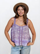 Ashley Printed Sleeveless Top With Lace Lilac