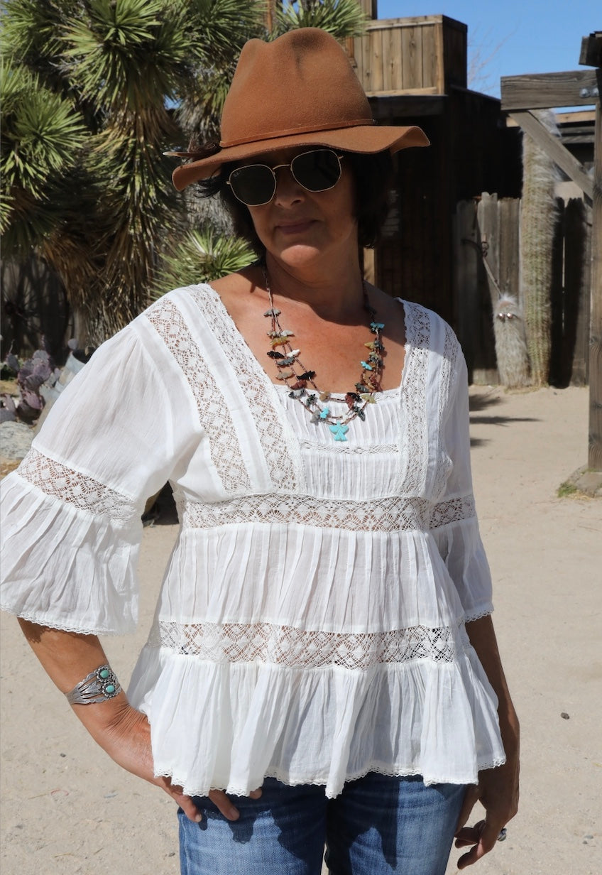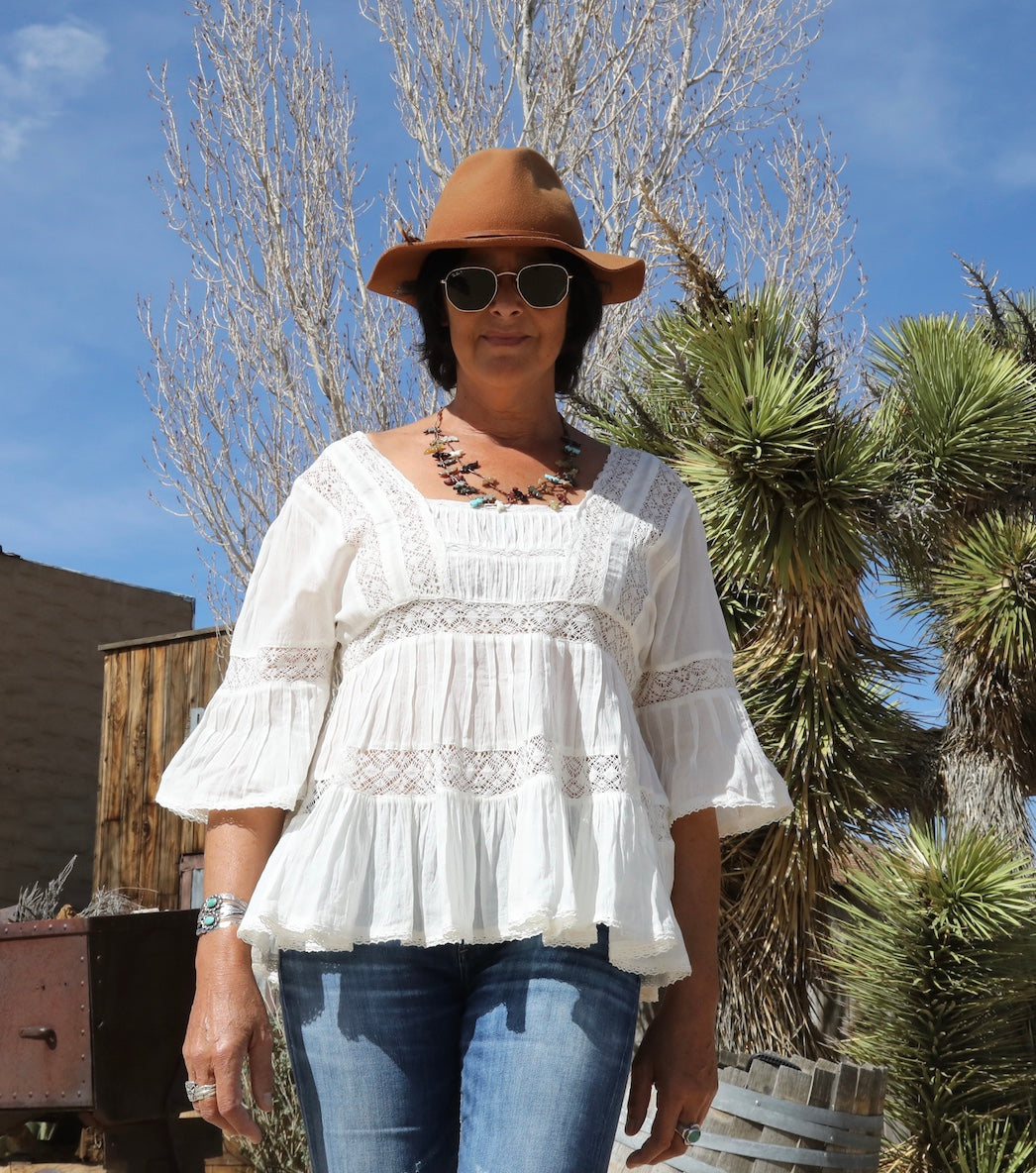 Embrace your boldest self in the Louise Short Sleeves Blouse, where delicate lace meets fearless style. This white bohemian piece features intricate lace detailing that commands attention while maintaining an effortlessly chic aesthetic. Perfect for those who refuse to play it safe, the short sleeves offer breathable comfort without compromising on edge. Whether you're layering over a slip dress or wearing it solo, this blouse transforms any outfit into a statement of confidence and individuality. Dare to stand out.