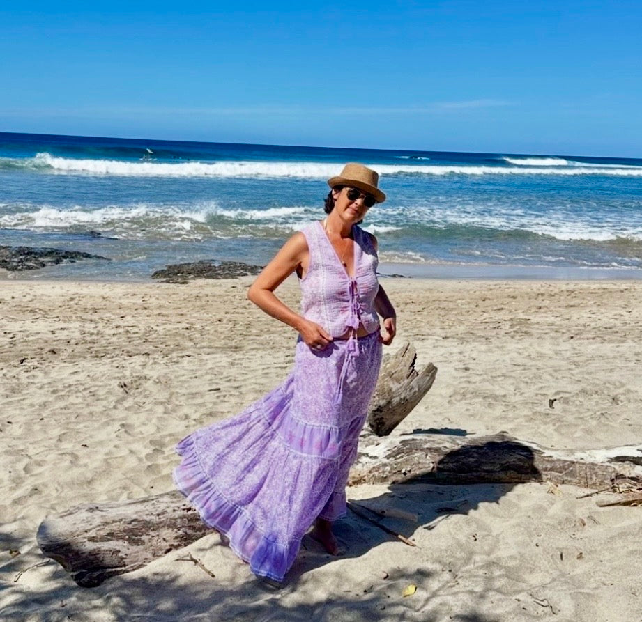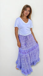 Unleash your wild side in the Roxane Printed Maxi Skirt. A fearless bohemian statement piece that refuses to play it safe. Crafted from breathable cotton in mesmerizing lilac and purple hues, this floor-length skirt features an adjustable drawstring waist for a custom fit that moves with your boldest adventures. Perfect for summer wandering, festival season, or anyone ready to embrace their untamed spirit. Daring, flowing, and unapologetically you.