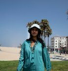 Ladies and gentlemen, let me introduce you to the Serenity Embroidered Blouse in Teal. This blouse is a classic, just like your favorite dad jokes. But don't be fooled, it's not just your average blouse. It's got some serious embroidered details on the front and back, making it look more elegant than a penguin in a tuxedo. And let's be real, we all want to look elegant, especially on those hot summer nights when we're sweating like a pig in a sauna.But wait, there's more! This tunic is versatile, just like a Swiss Army knife. You can pair it with denim and wedges for a casual look, or throw on a mini skirt and boots for a more edgy vibe. And the color? Teal, baby. It's like the ocean on a sunny day, but without the sand getting stuck in your swimsuit.Oh, and did I mention it's one size fits all? That's right, it's like a magical garment that can fit anyone from a size 2 to 12. And it's made from 100% Indian cotton, so you know it's soft and breathable. Plus, it's lined for extra comfort. And where is it made, you ask? India, my friends. The land of delicious curry and beautiful fabrics.So what are you waiting for? Get your hands on the Serenity Embroidered Blouse in Teal and feel like a million bucks. Trust me, you'll thank me later. Now if only I could find a joke to make this product description even better...